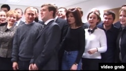 Кадры заканчиваются снимком на память всех членов предвыборного штаба Путина.